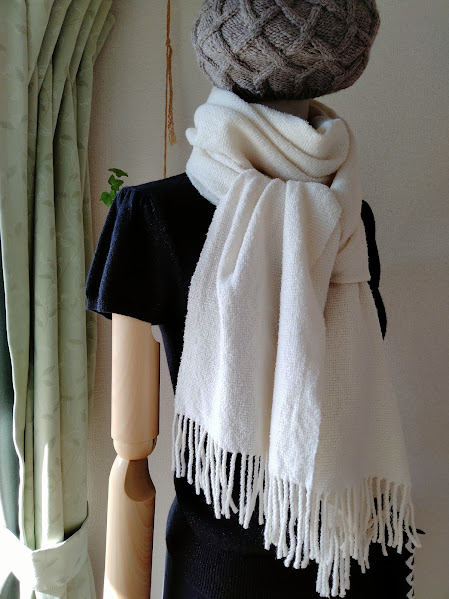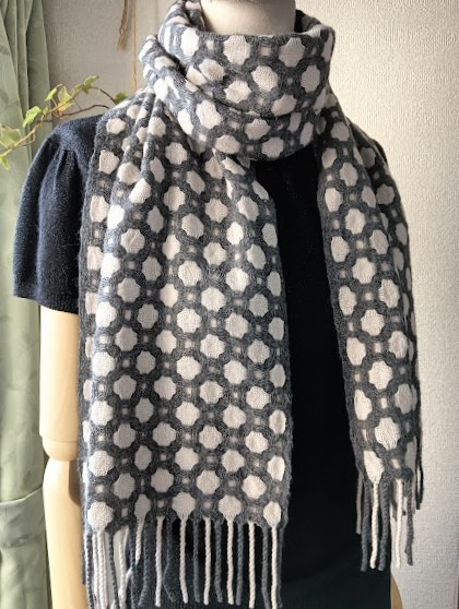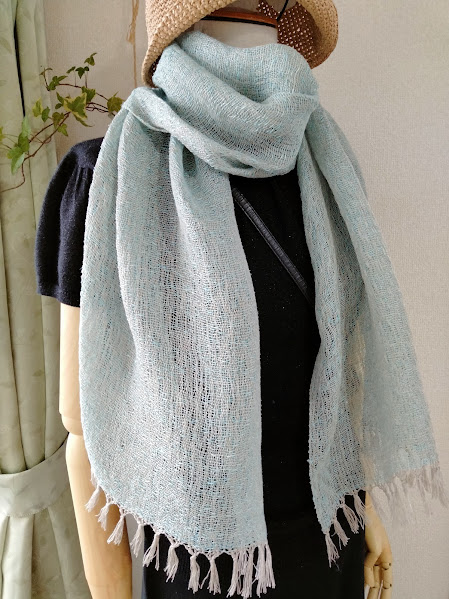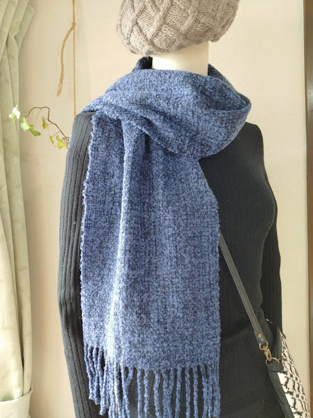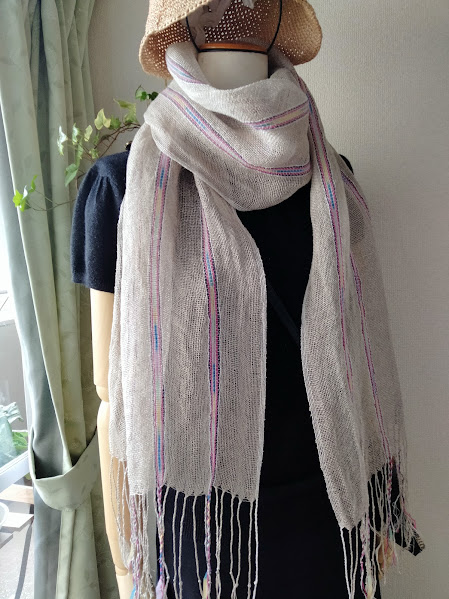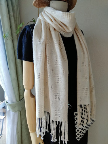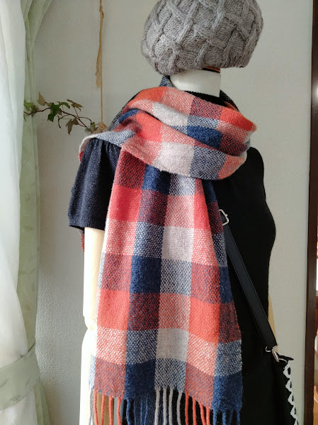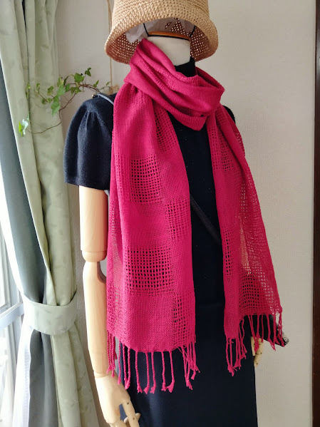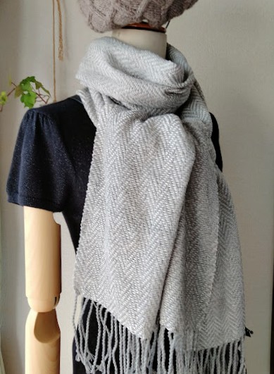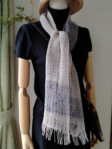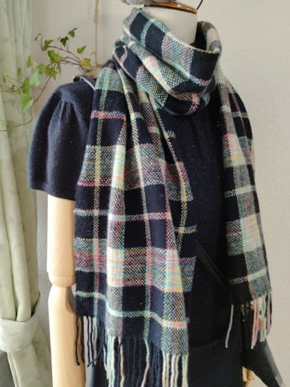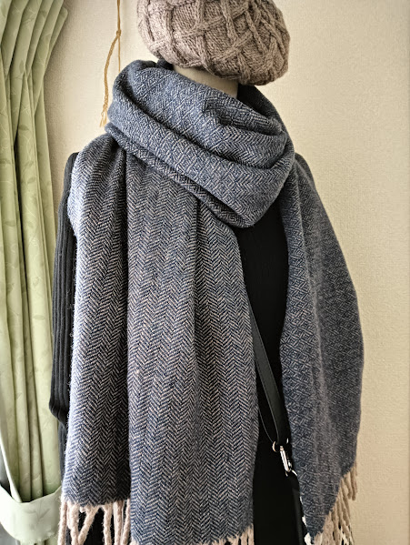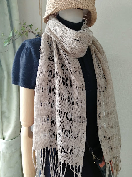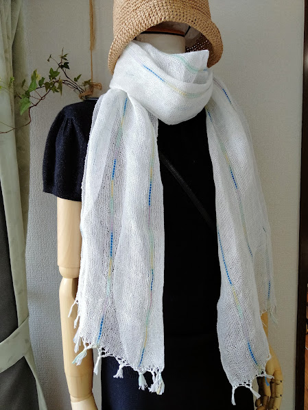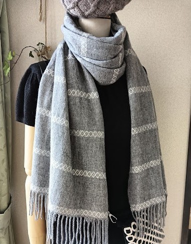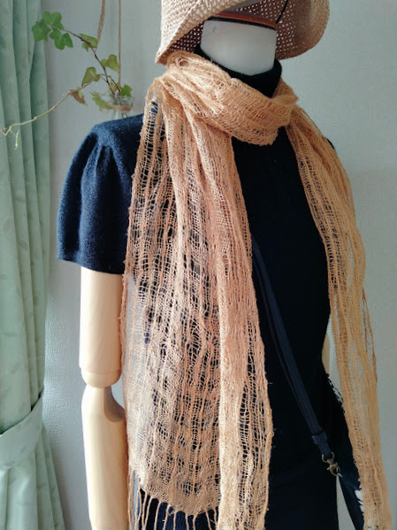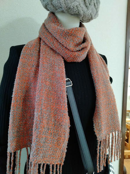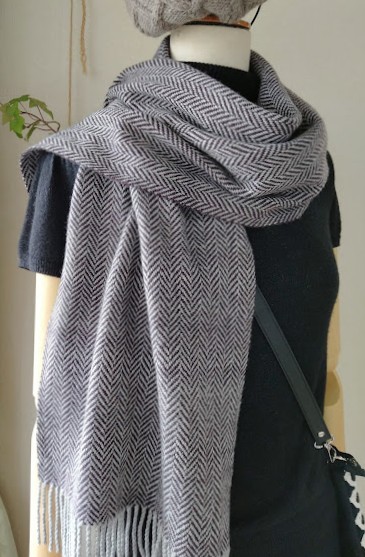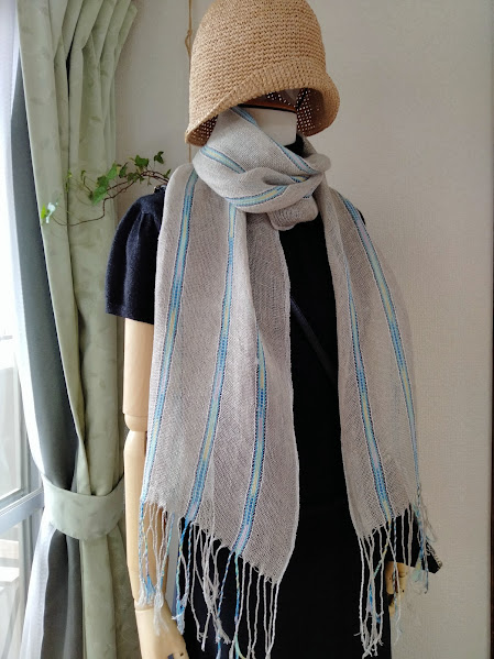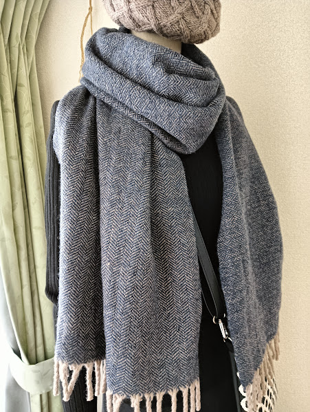 薄くて広幅のストールは、着回しが効いて、季節も長く対応できます。