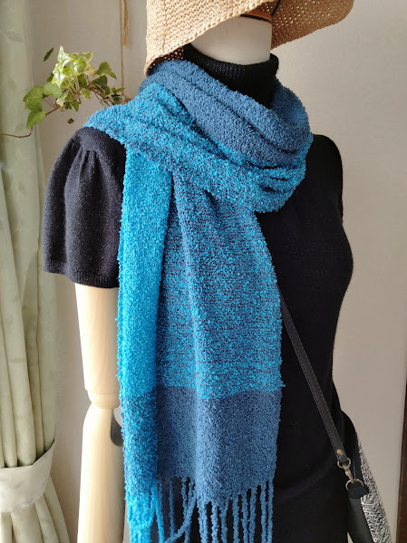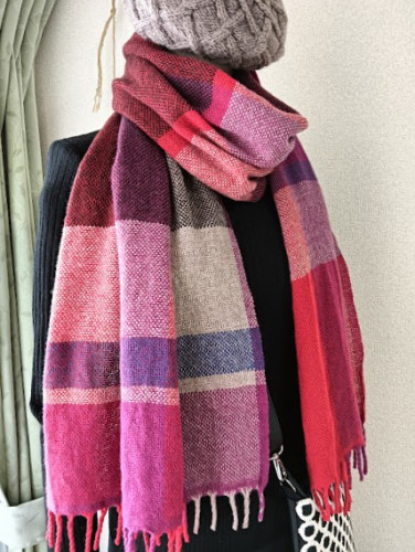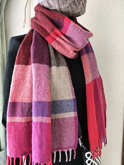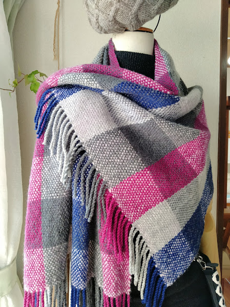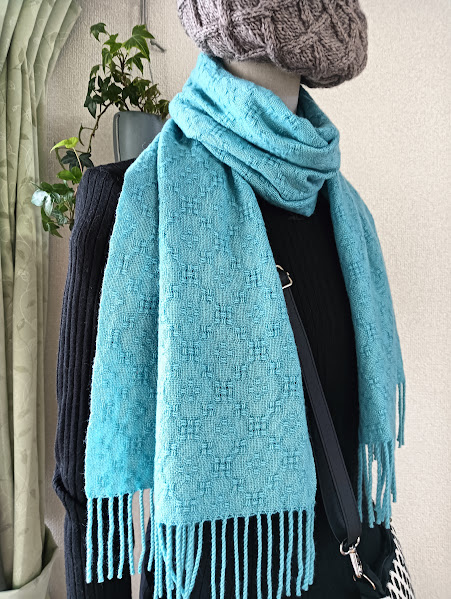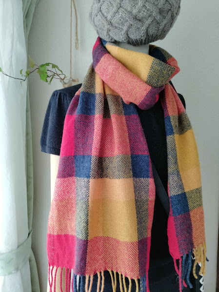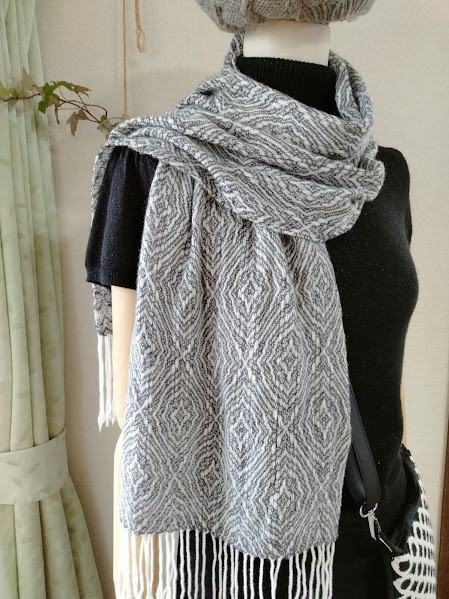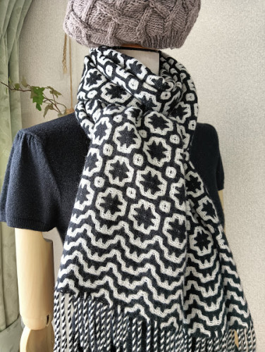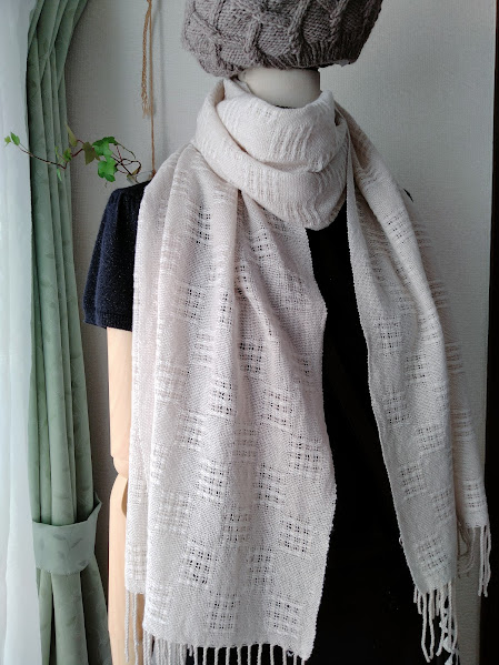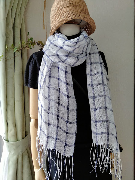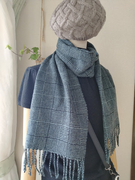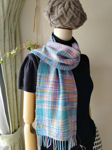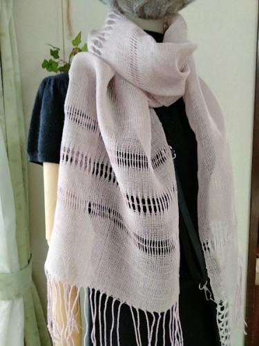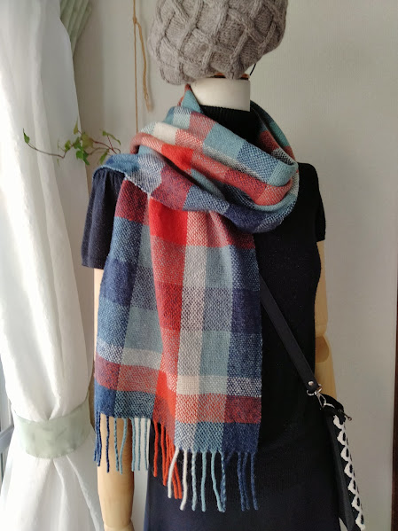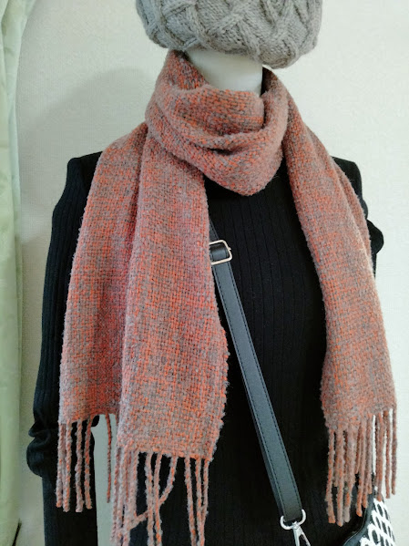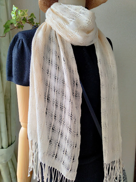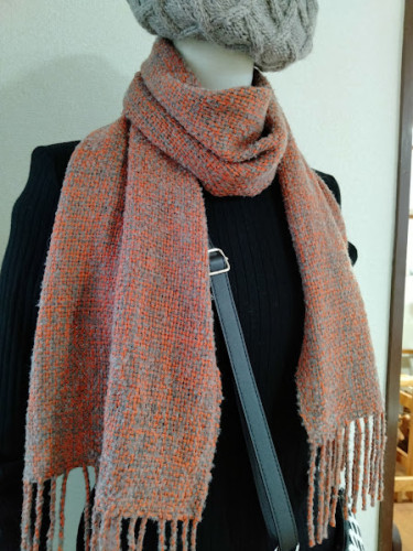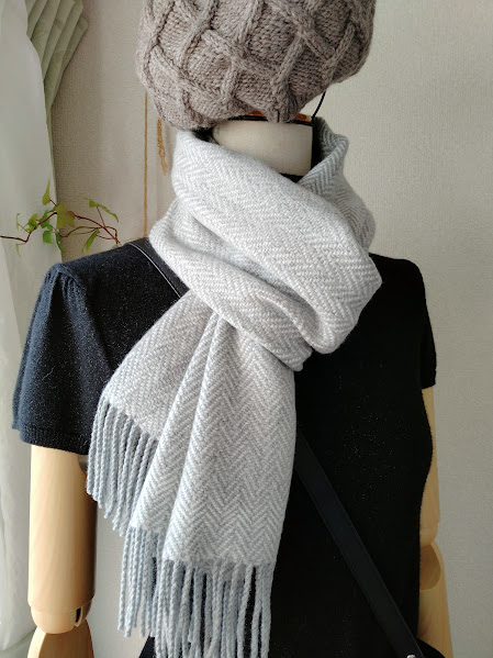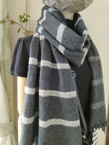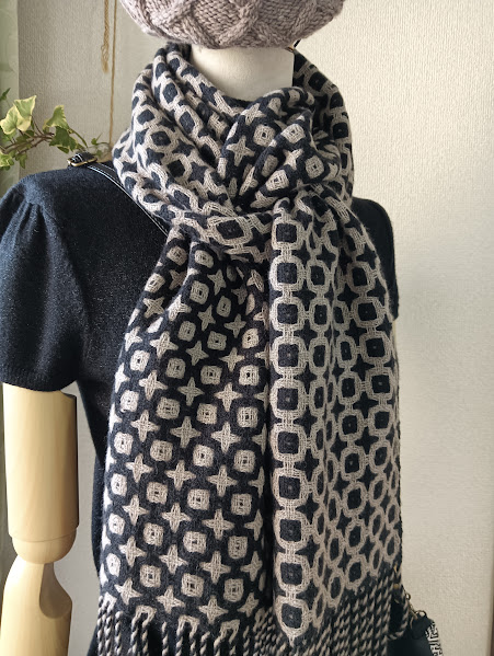 薄くて広幅のストールは、着回しが効いて、季節も長く対応できます。
