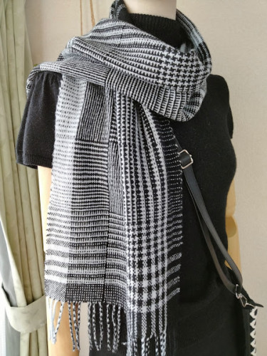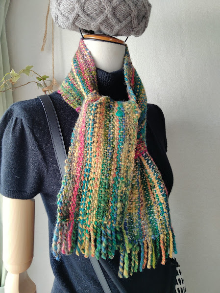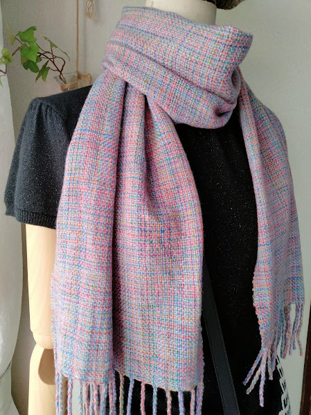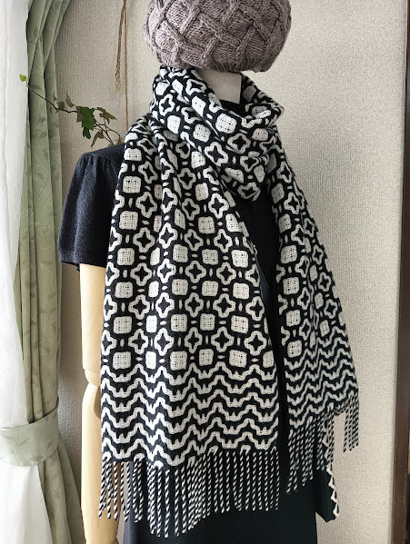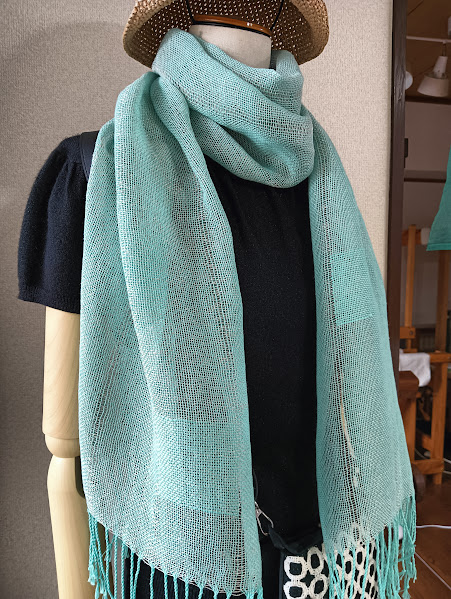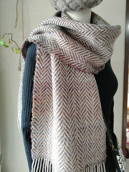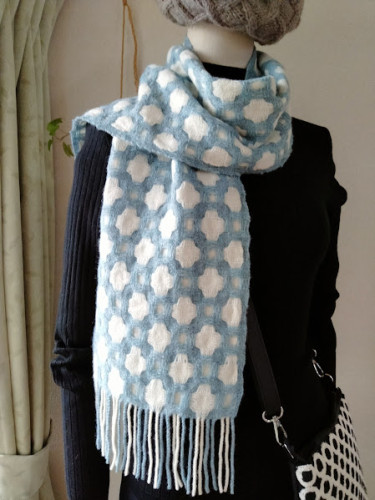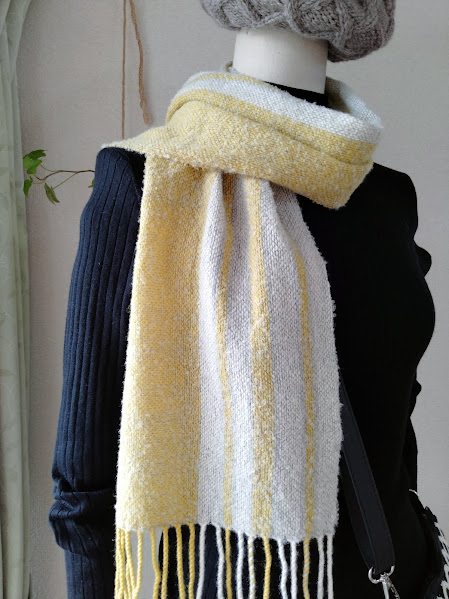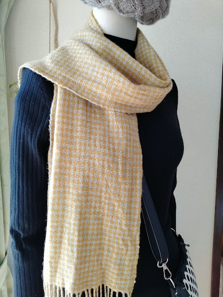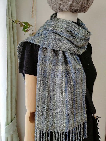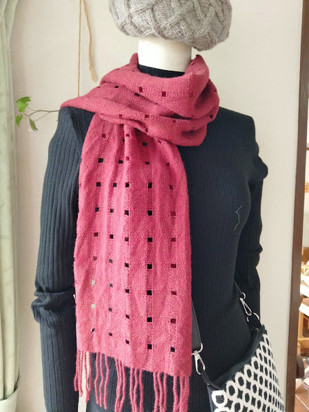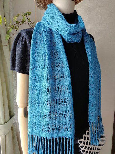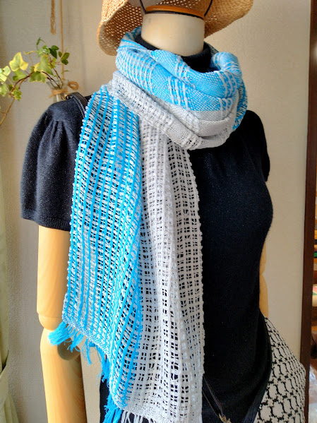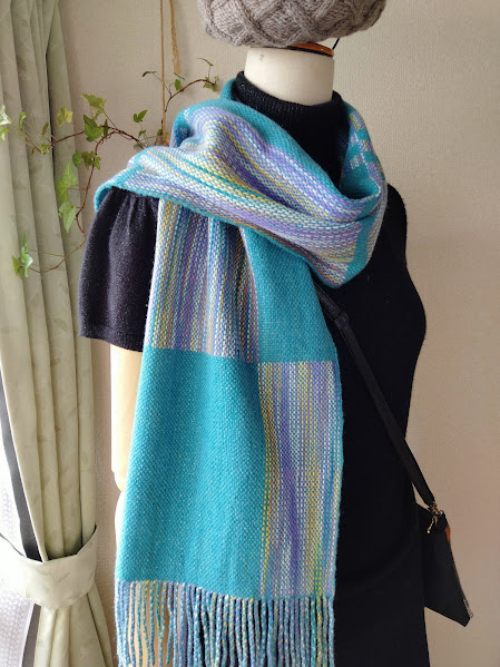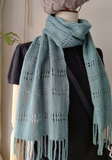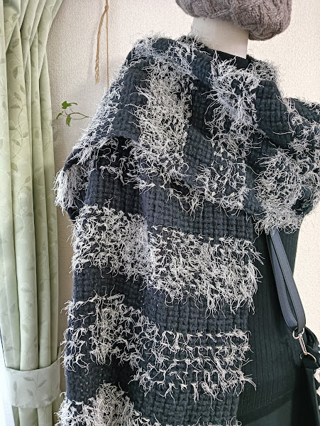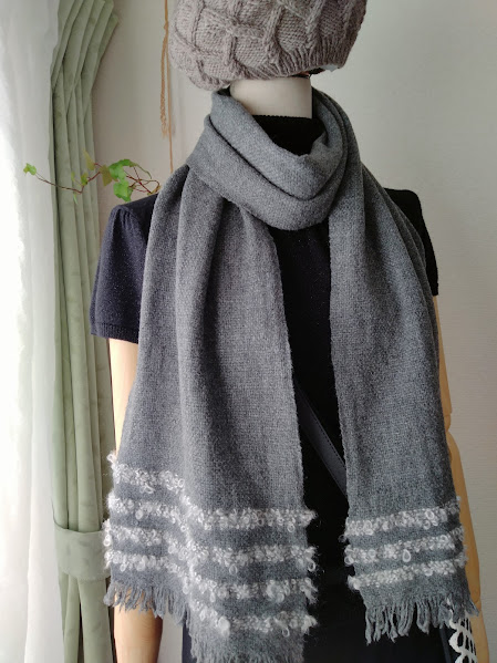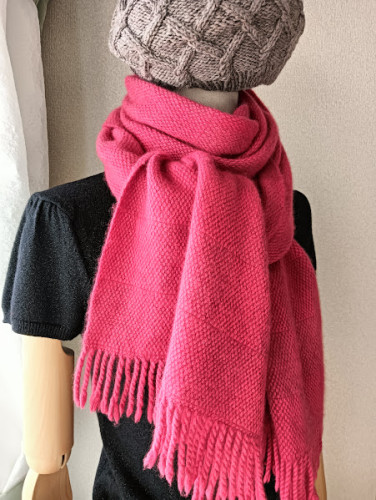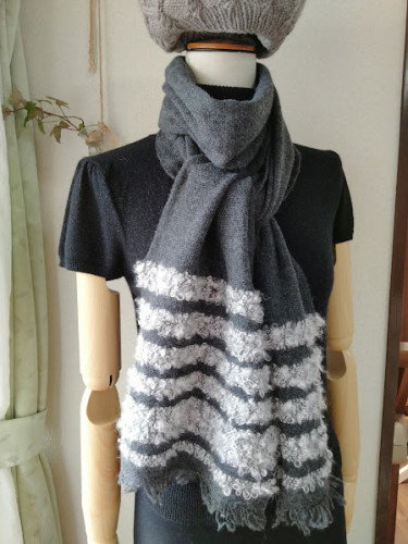 薄くて広幅のストールは、着回しが効いて、季節も長く対応できます。
